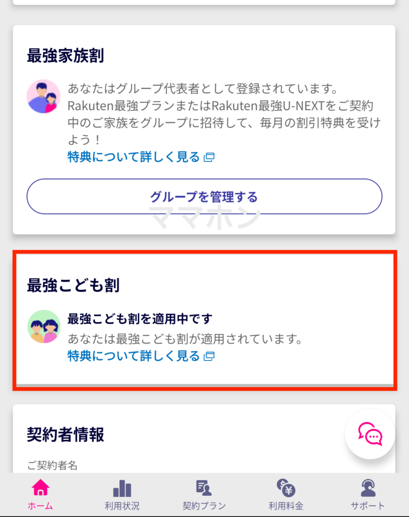 楽天モバイルの「最強こども割」を利用するには、子ども名義での契約が必要です。